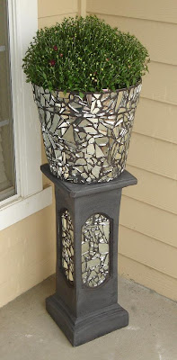 I found this big pot and plant stand at my appartment...someone didn't want them, so I claimed them for free! I painted the stand with textured paint and then did the rest in mosaics with the matching pot.